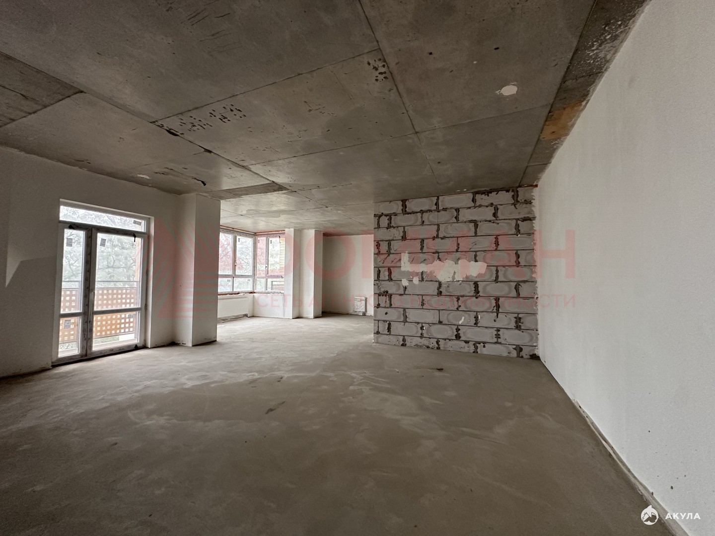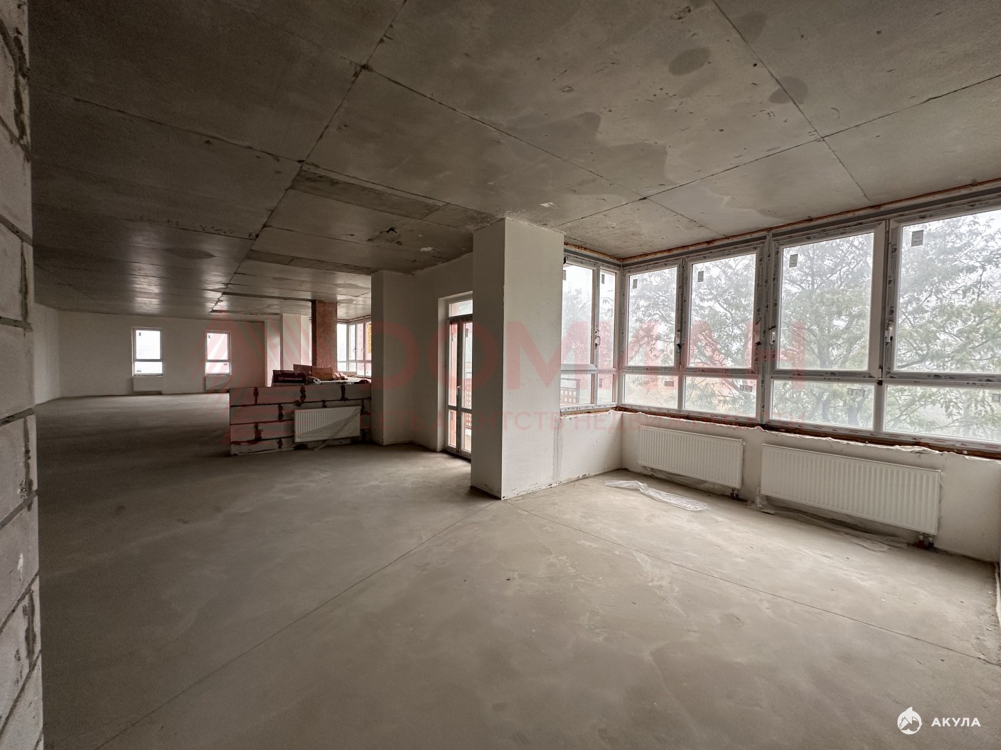 Квартира свободной планировки, предчистовая отделка.