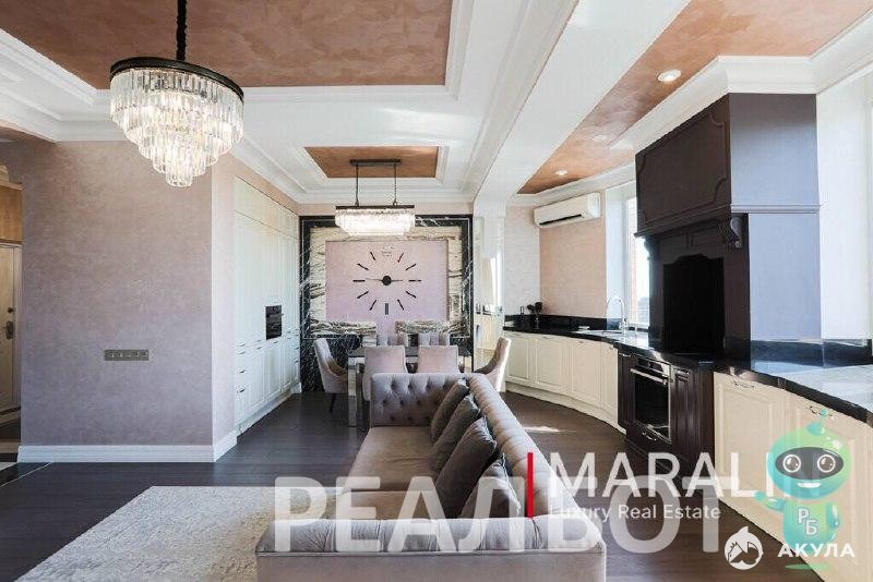 Общая площадь жилья- 100м2. Эргономичная планировка: холл, гардероб, совмещенная зона кухни-гостиной, три спальные ком