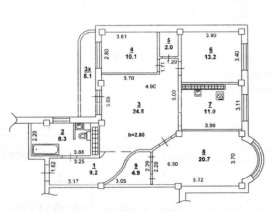 Три изолированные комнаты, просторный зал, большая кухня, входная группа- планировка и ремонт выполнены по индивидуальному дизайн проекту!