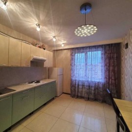 Арт. 129294640 В квартире выполнен качественный ремонт. В комнате натяжные потолки, виниловые обои, ламинат, установлена сплит-система. Кухня оборудована встроенным кухонным гарнитуром. Установлена вытяжка, холодильник, индукционная варочная панель и духовой шкаф. Выход на...