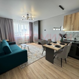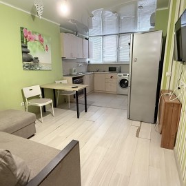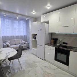 Арт. 65387366 1а комнатная квартира 37 кв.м с дизайнерским ремонтом. Кухня гостиная с панорамным остеклением, качественный кухонный гарнитур. Обеденная зона с красивым видом. В квартире ремонт делали для себя. Все что в квартире остается. В кухне и прихожей керамогранит- теплый...
