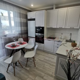 Арт. 126573822 Квартира уютная и укомплектована всей необходимой мебелью и бытовой техникой. Кухня: гарнитур сделан на заказ все ящики и шкафы с доводчиками. Гостиная занированная, установлена двух-спальная кровать с ортопедическим матрасам, а так же выделено место для зоны...