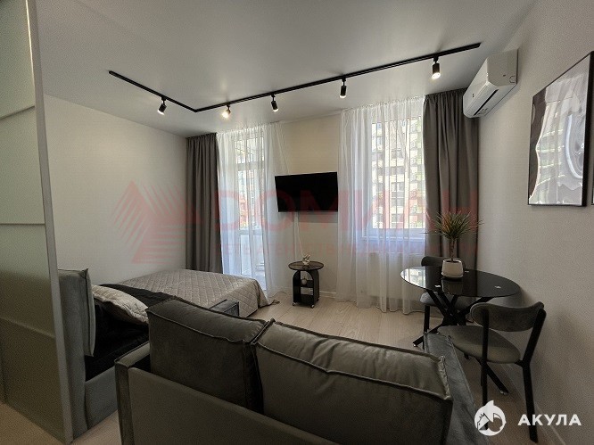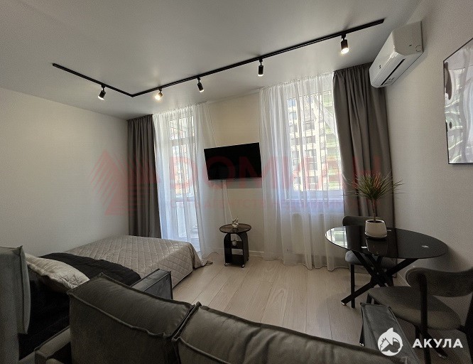 Продается студия, 30 кв.м, 13/25, качественный дизайнерский ремонт, зоны теплого пола, мебель, бытовая техника, сплит система, балкон остеклен и утеплен. Окна в квартире выходят на Восток, поэтому даже зимой квартира теплая и светлая.