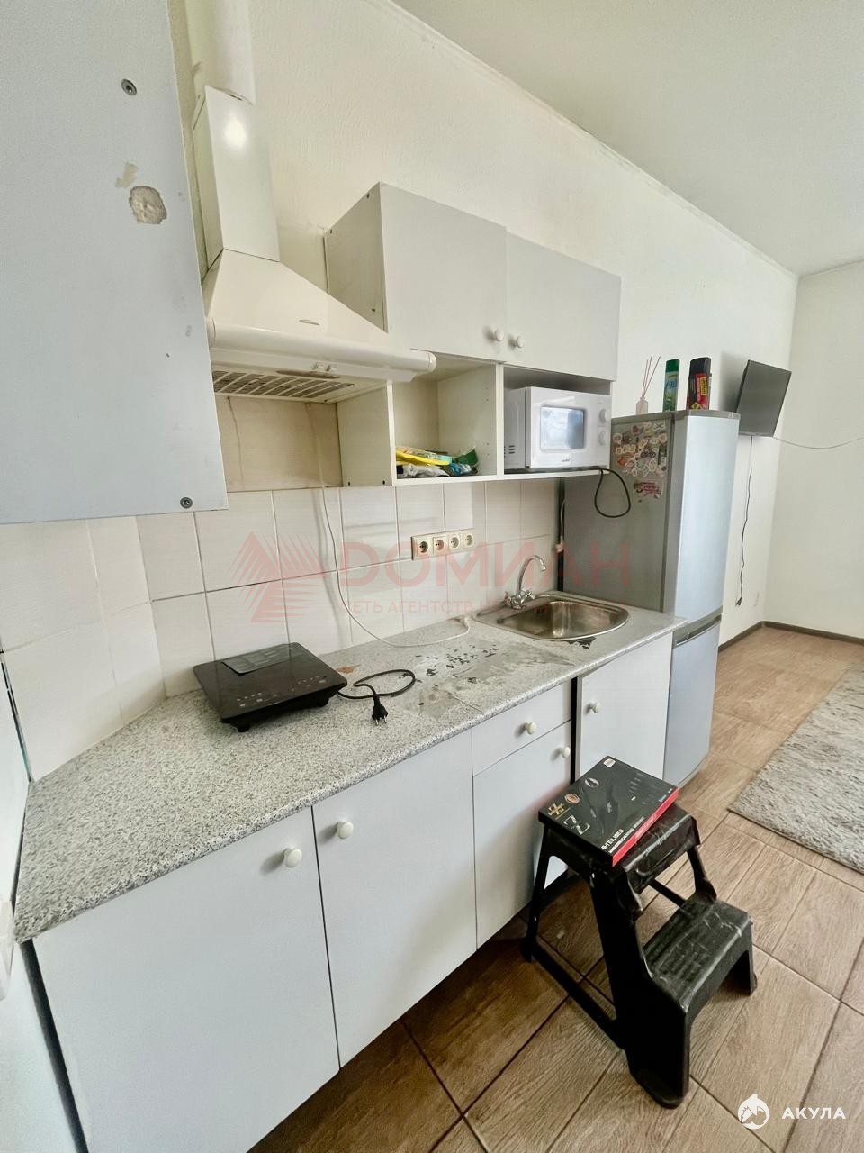 - Наличие кухонного гарнитура с бытовой техникой (холодильник, плита, вытяжка).
