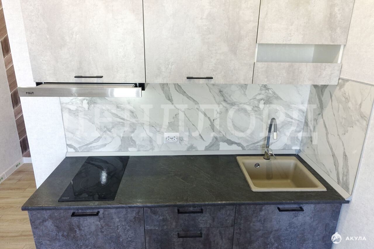 Встроенная кухня с варочной панелью и вытяжкой.