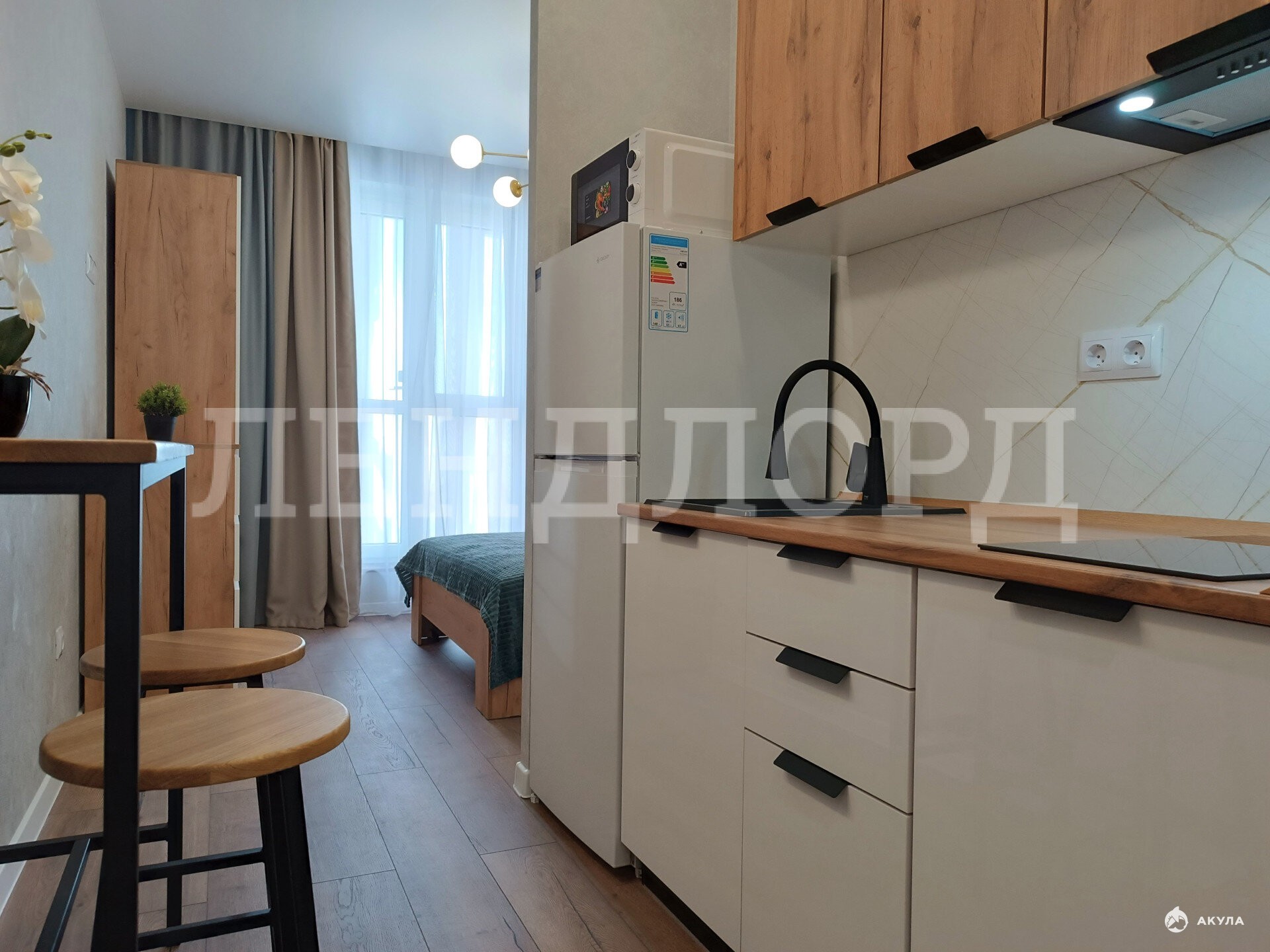 Квартира студийной планировки, панорамное остекление.