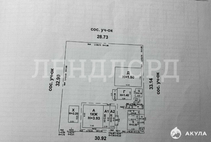 - Площадь участка