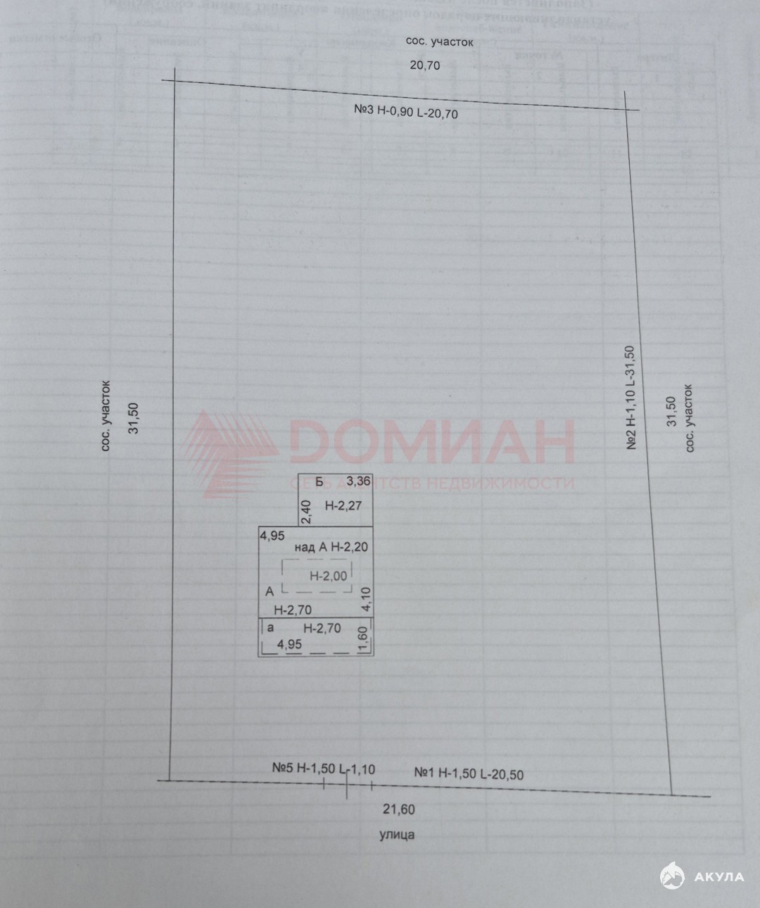Участок прямоугольный, фасад 21.6*31.5