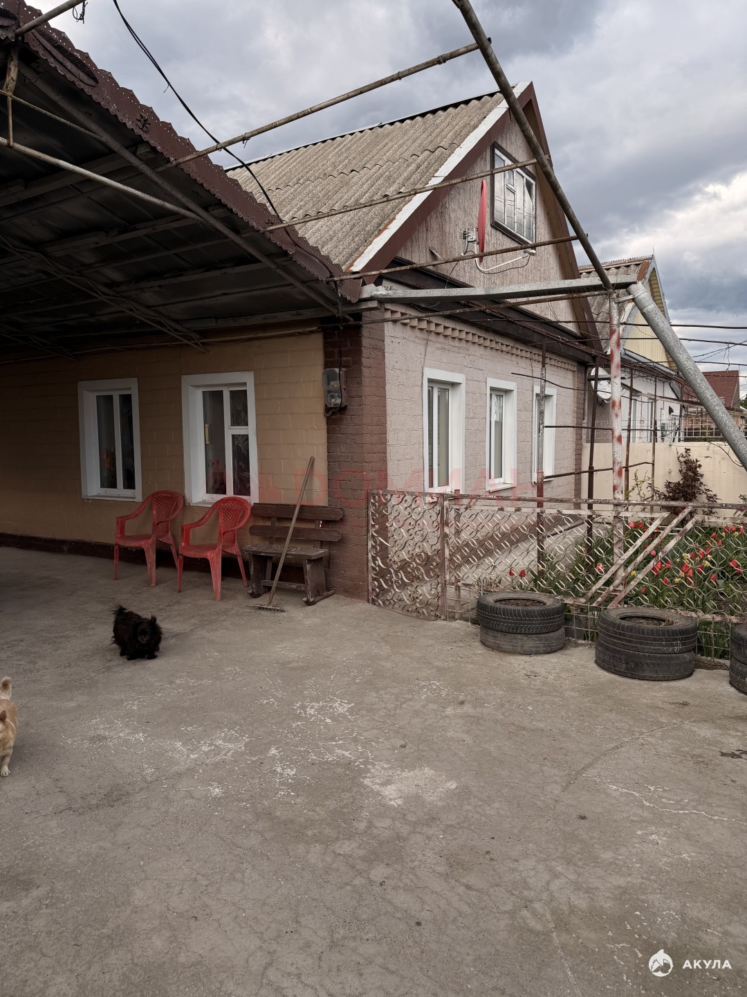 Во дворе навесы, летняя кухня, гостевой домик, много хоз. построек, уличный душ и туалет.