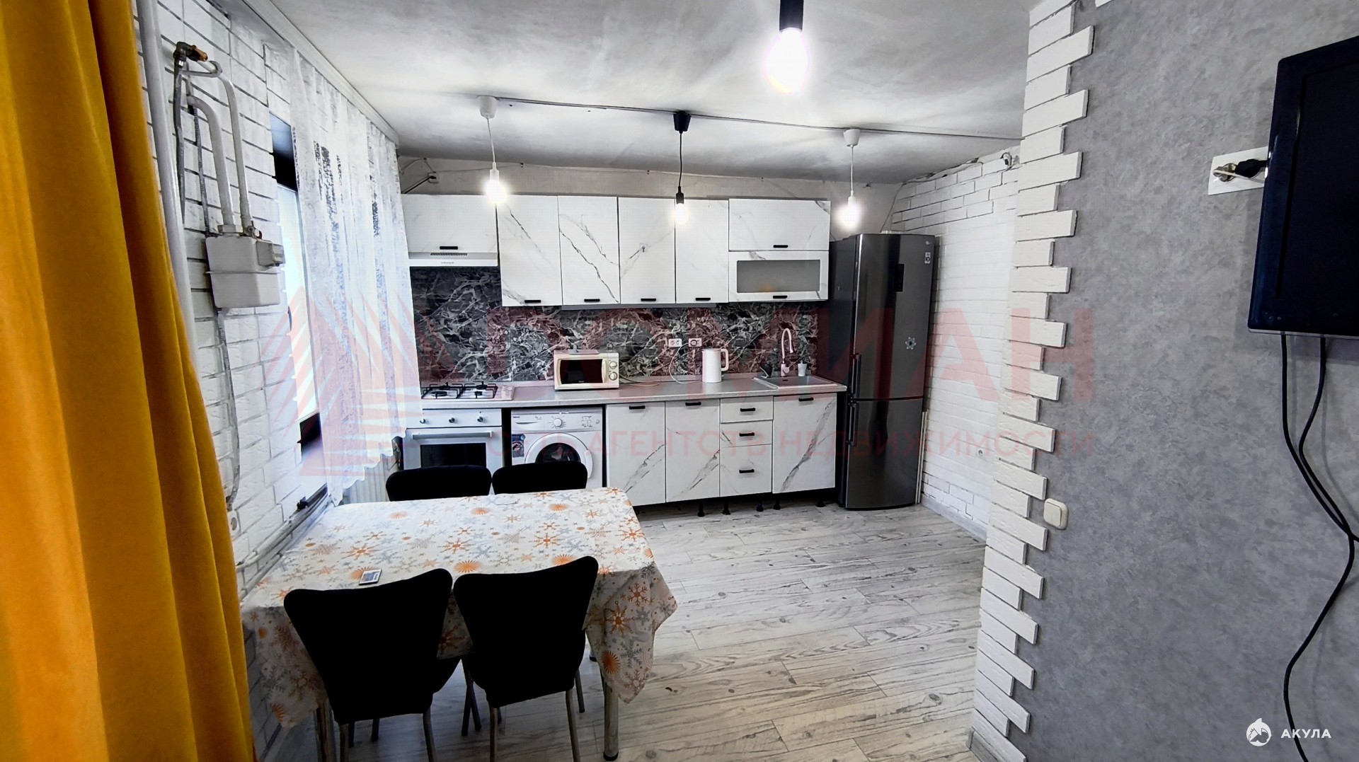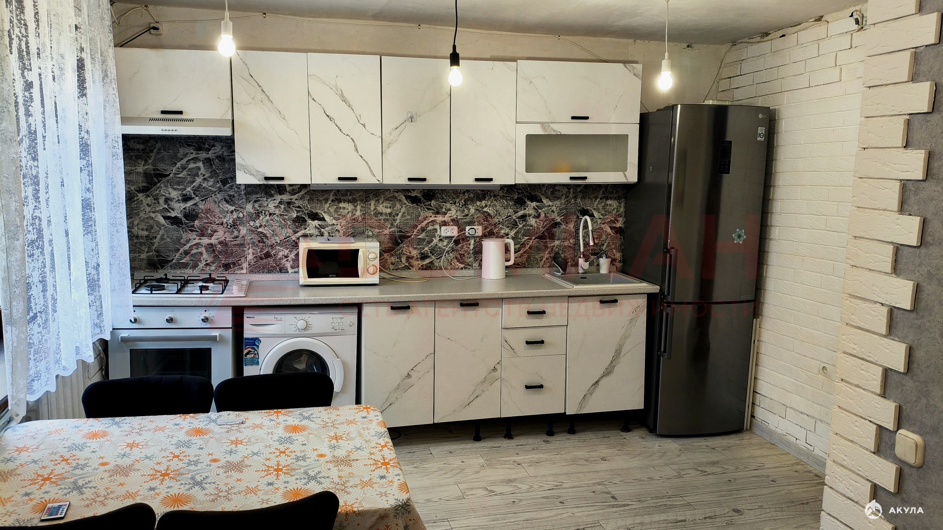 В квартире есть все необходимое для жилья-холодильник, кухонный гарнитур, духовой шкаф, сплит система, а также кладовая комната в подвале дома.