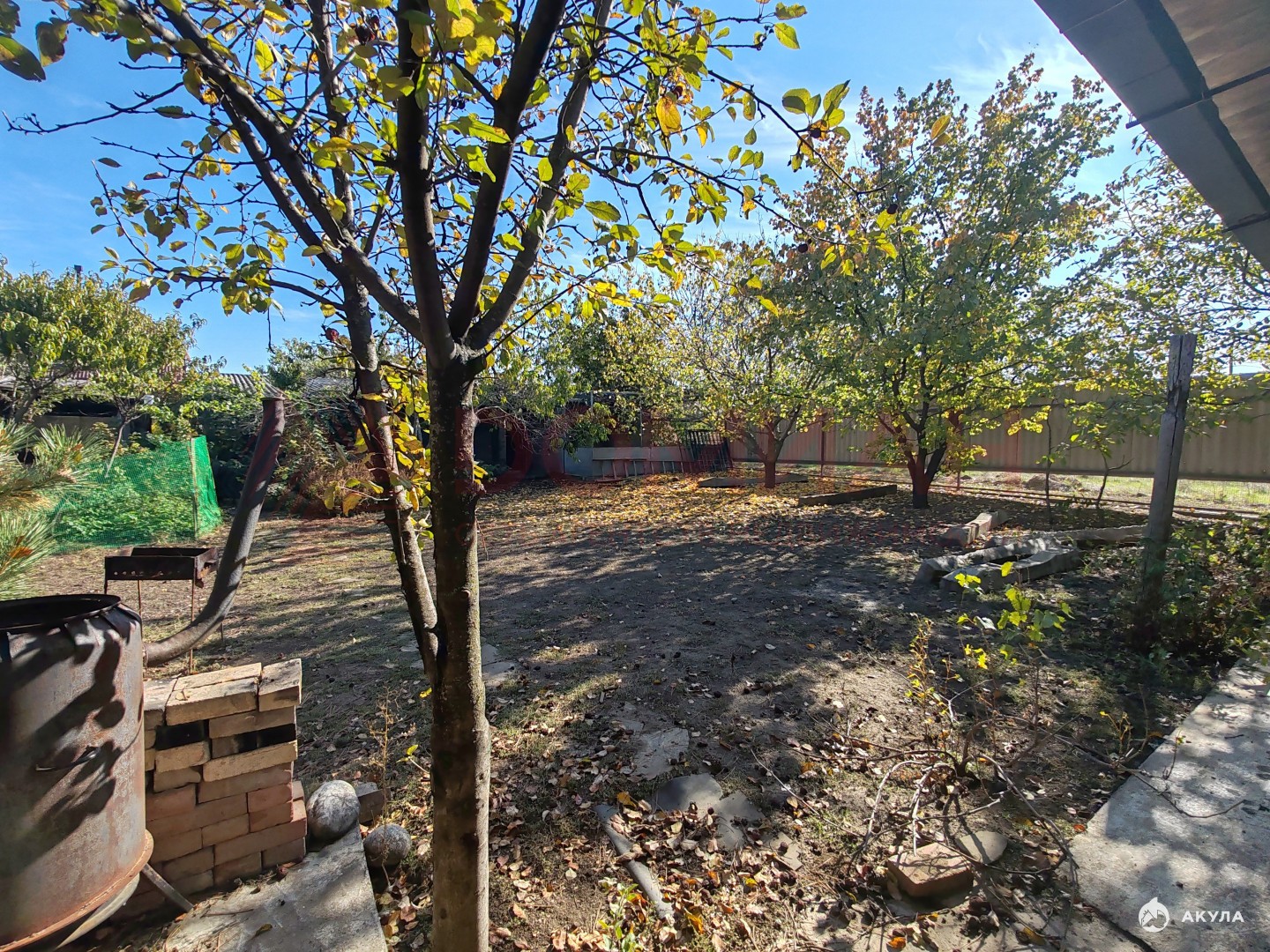 фасадом 32 метра, огороженный со всех сторон,