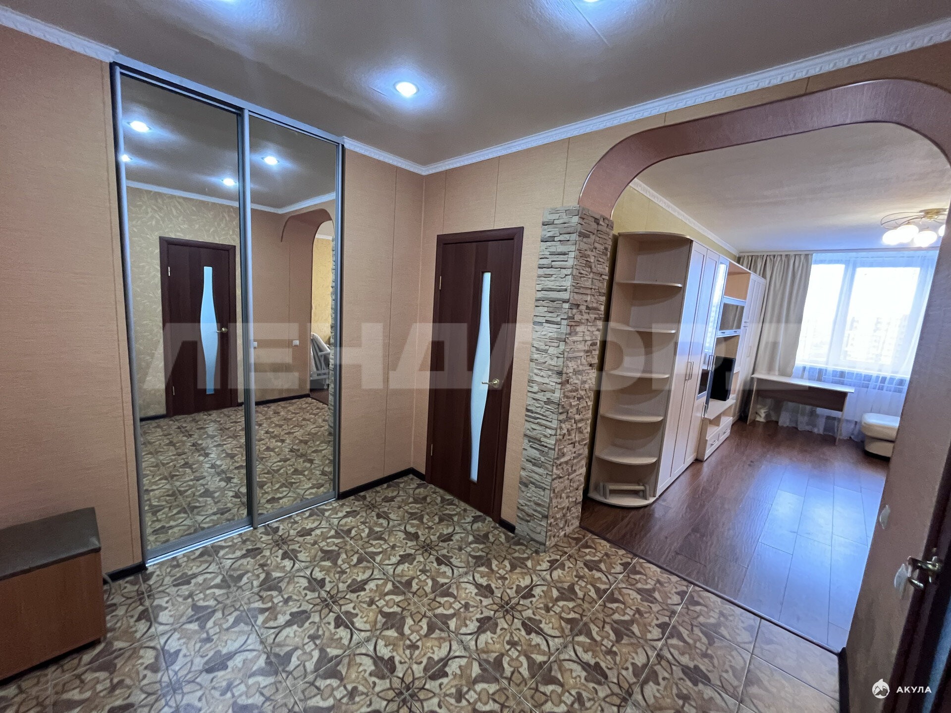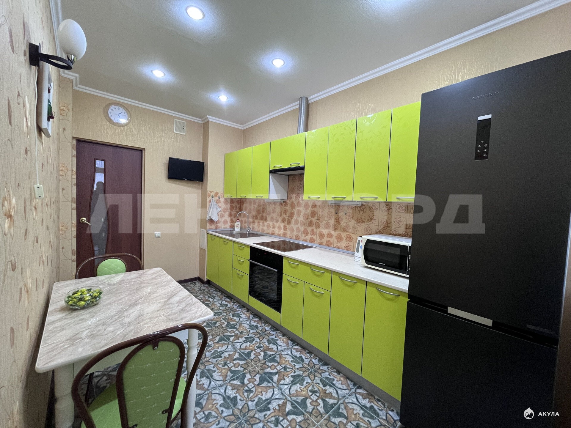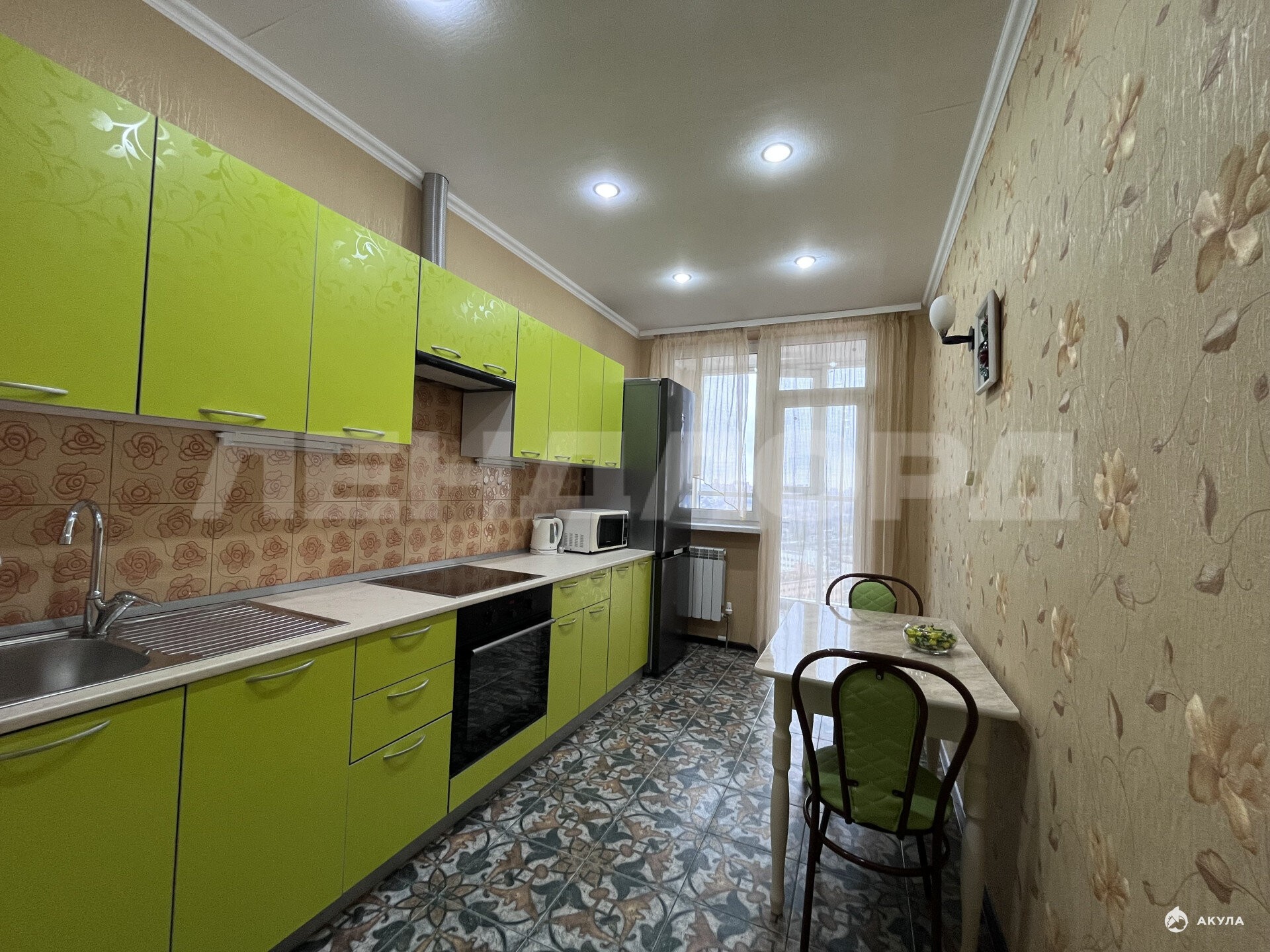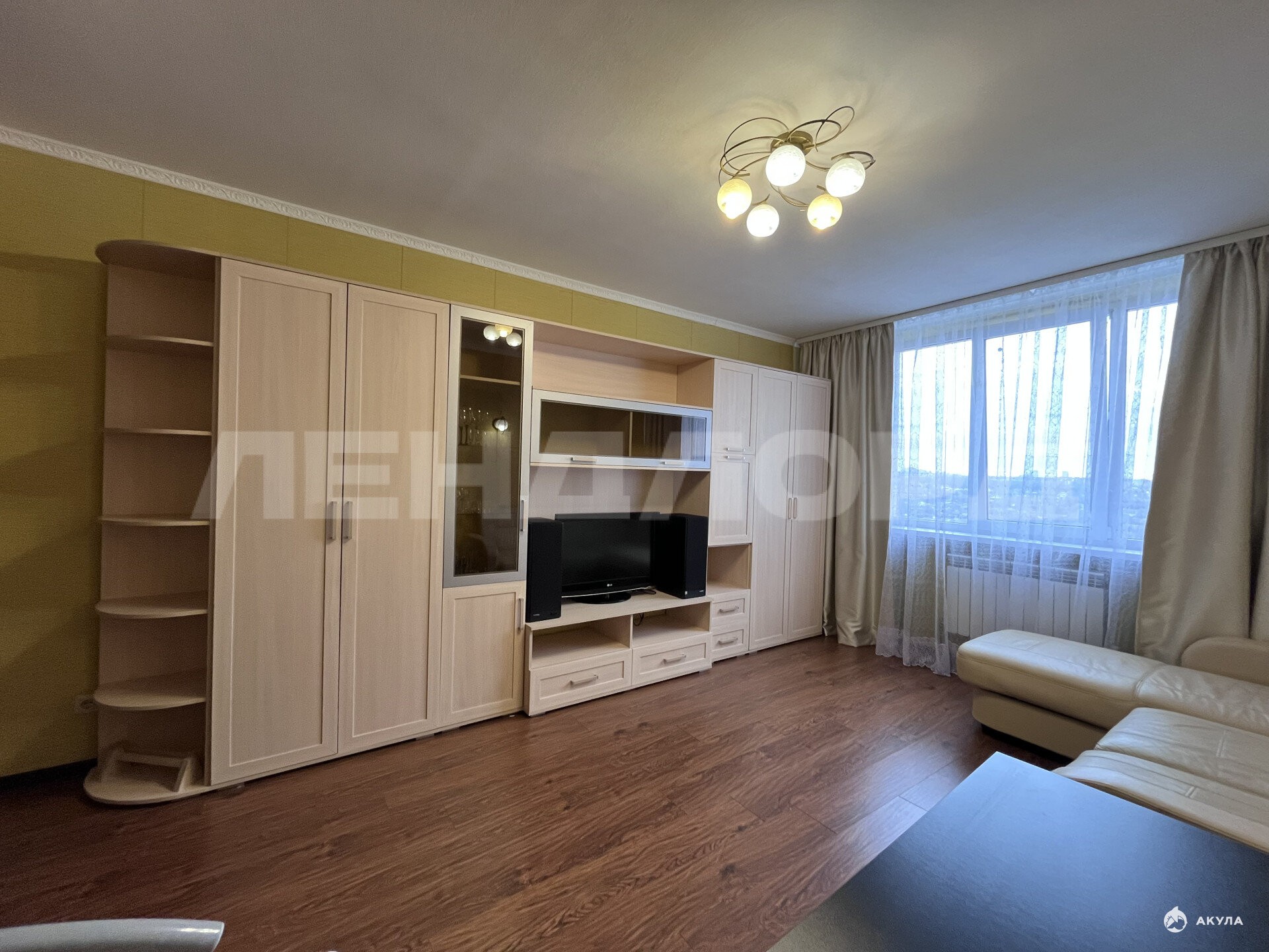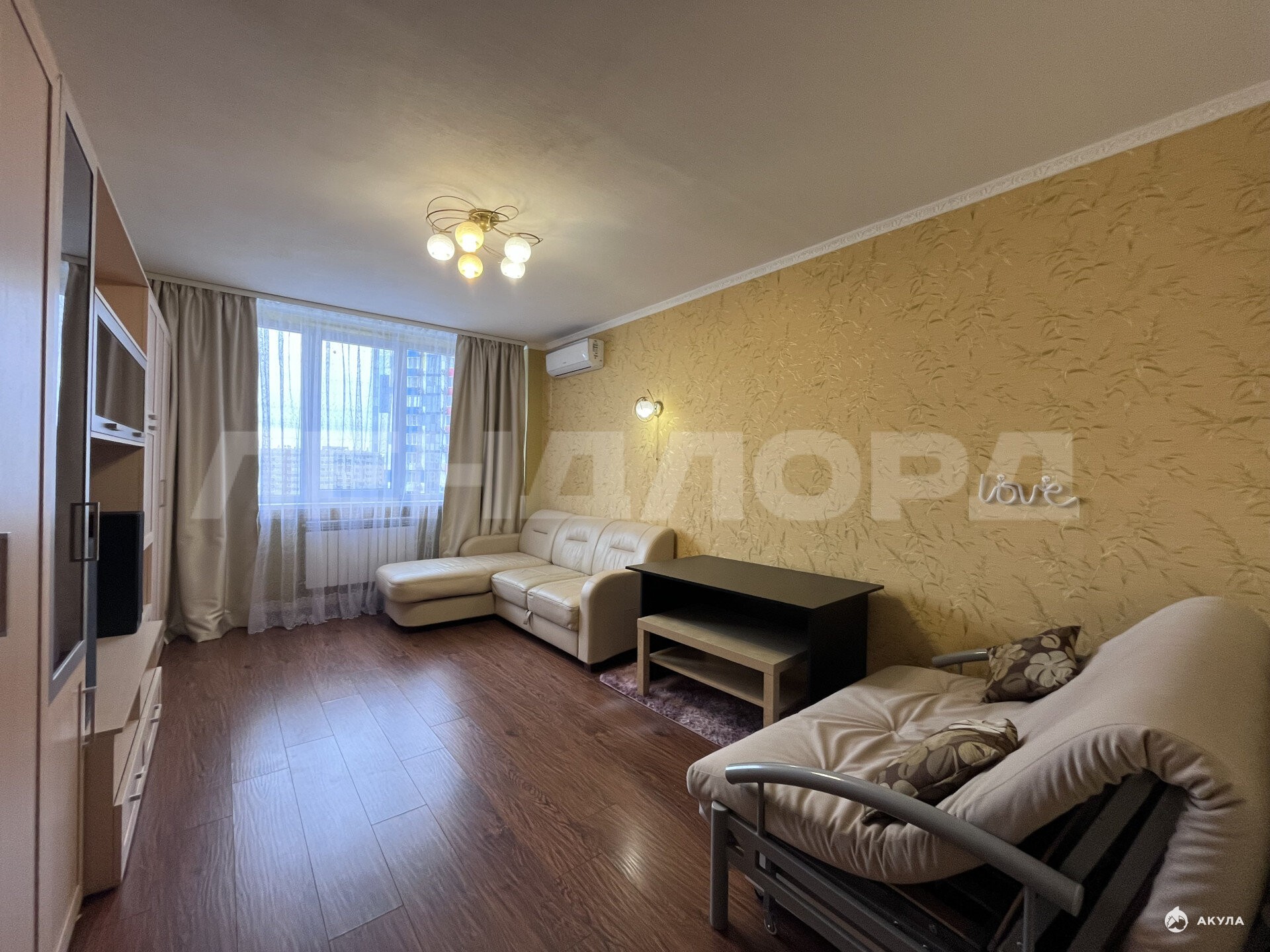 Квартира полностью укомплектована мебелью и техникой: холодильник, стиральная машина автомат, телевизор в жилой комнате, телевизор на кухне, сплит, микроволновка, чайник электрический, варочная панель индукционная на 4 комфорки, духовой шкаф, утюг, гладильная доска, диван раскладной (экокожа), диван-кровать (метал), письменный стол, журнальный столик, мебельная стенка из пяти модулей, обеденный стол прямоугольный, 4 стула со спинками (метал+кожзам), стол круглый на балконе, встроенная кухня, вытяжка, вместительный шкаф-купе, обувница, пуф-тумба, роутер.