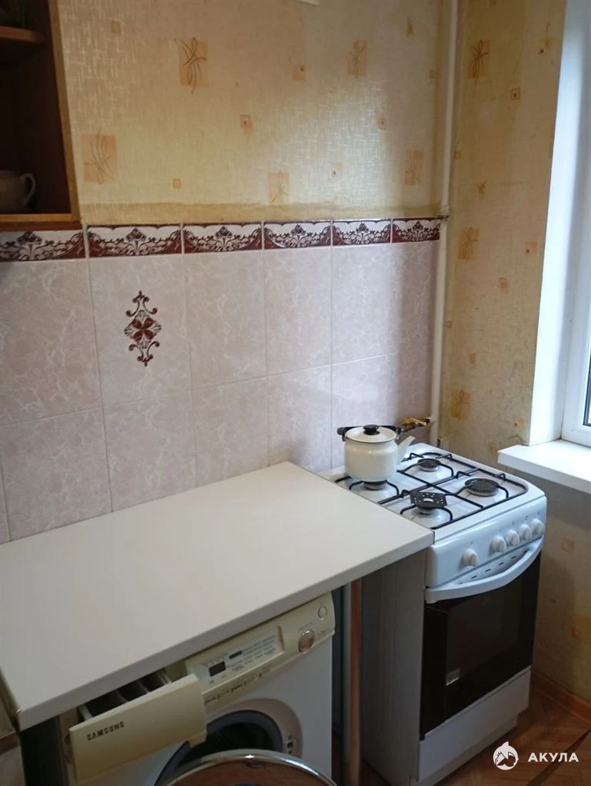 В комнате установлен шкаф, две кровати и диван, а также имеется телевизор и кондиционер. Из мебели есть обеденный стол и стулья. В кухне установлена газовая плита и стиральная машина. Санузел совмещённый, оборудован ванной, унитазом и раковиной.