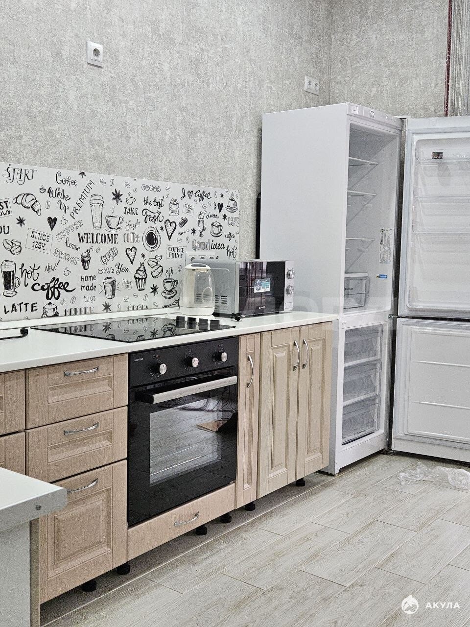 В квартире имеется вся необходимая мебель: кухонная мебель, варочная панель, электрический чайник, мультиварка, стол, стулья, холодильник, телевизор, диван, шкаф, стиральная машинка, сплит система.
