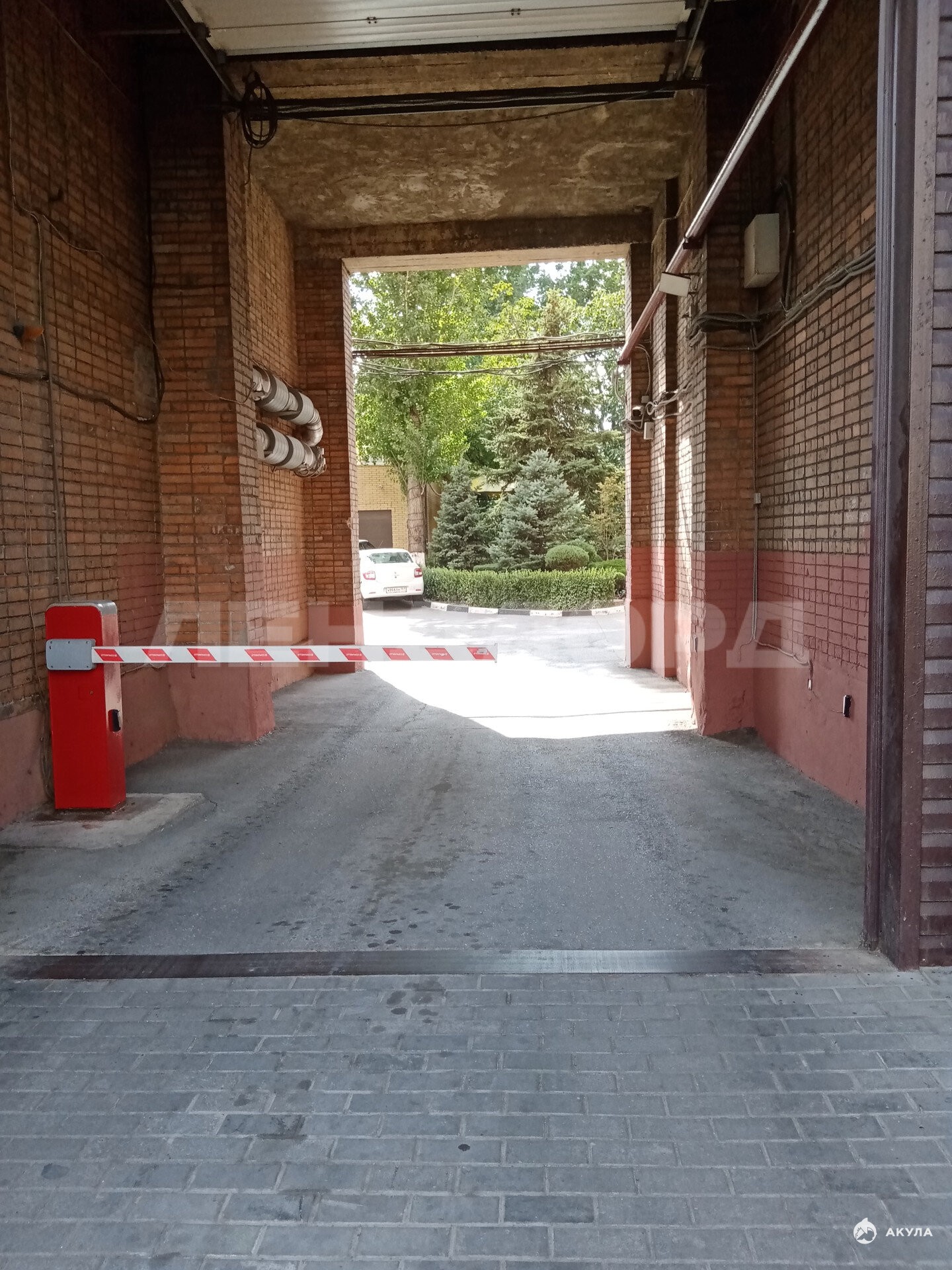 Закрытая территория, шлагбаум, ухоженный двор, ели, туи, цветы, лавочки для отдыха.