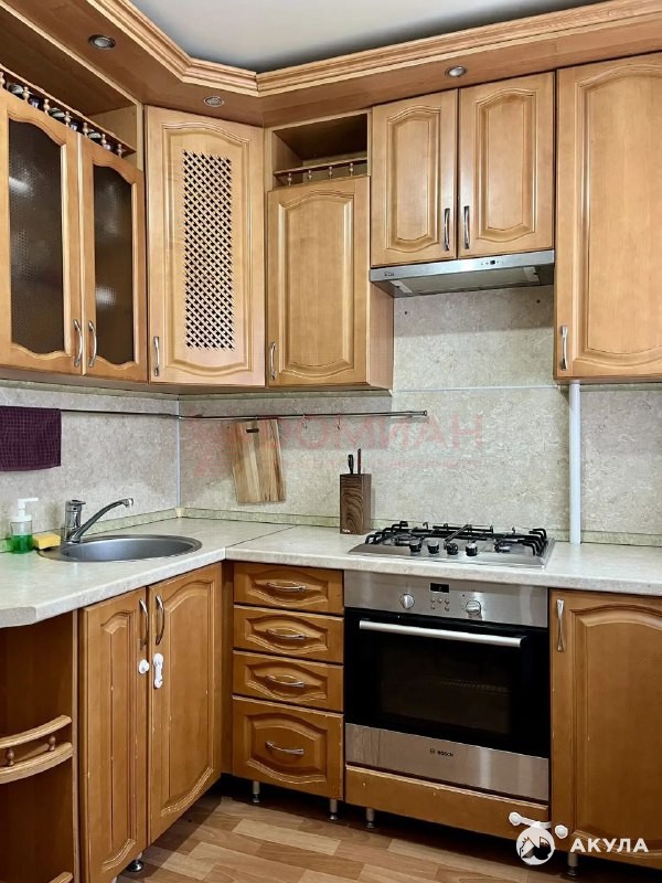 -Кухня: кухонный гарнитур, встроенная газовая плита, духовой шкаф, вытяжка