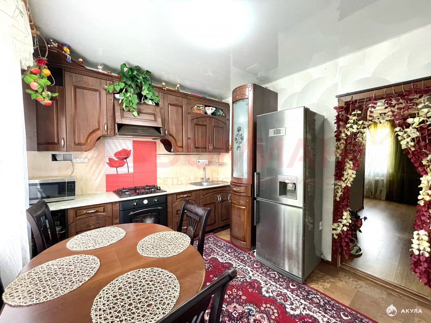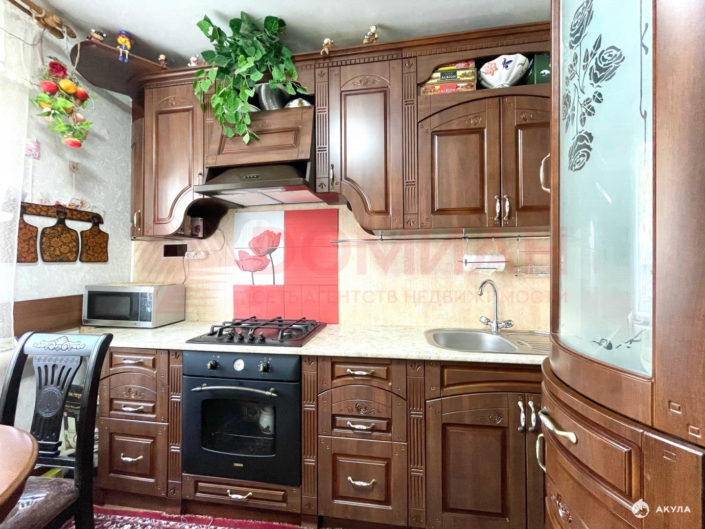 Дорогой классический кухонный гарнитур. Двери заменены, на полу ламинат, окна метало пластик! Натяжные потолки!